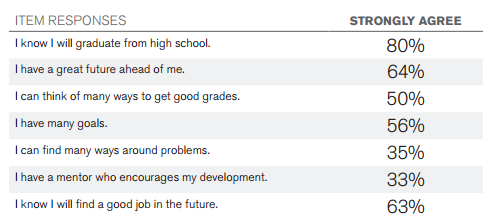 This report presents results from the 2015 Gallup Student Poll survey conducted nationwide in America's schools with more than 900,000 students in grades five through 12. A total of 3,300 schools participated in the 2015 Gallup Student Poll, representing over 550 unique school districts across 46 states. The 24 core items on the survey measure four dimensions of student success: